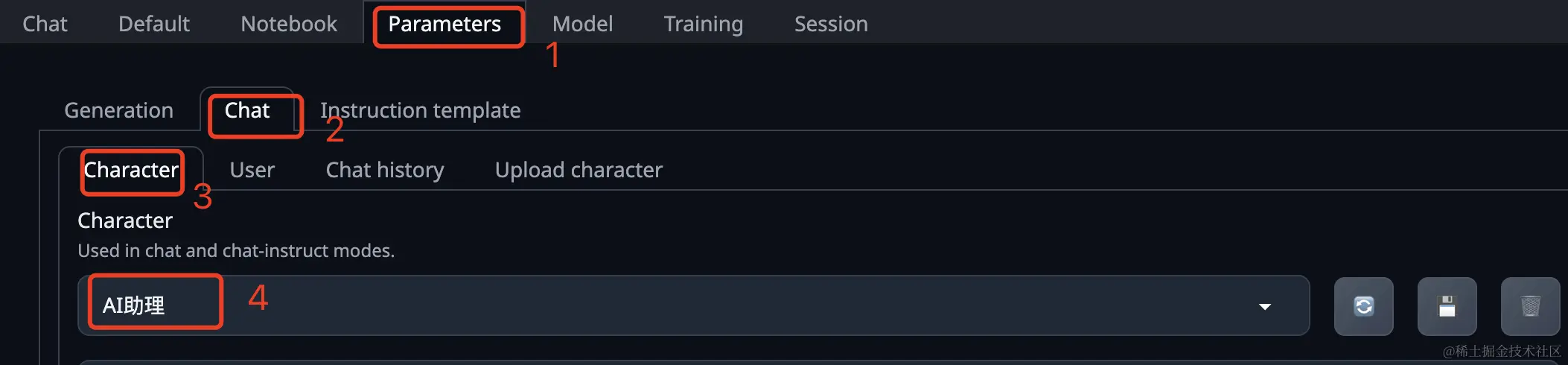 然后在 Parameters 中选择内置的聊天对话角色。