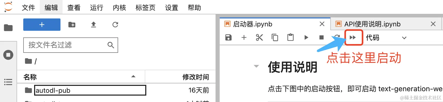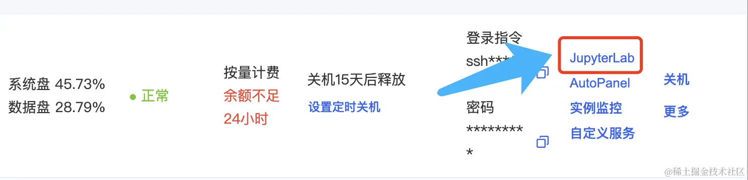 4、服务器开机后,点击“JupyterLab”进入一个可编程的Web交互环境。