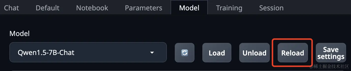 2、点击 Reload 重新加载模型,因为此时模型已经被训练污染了。