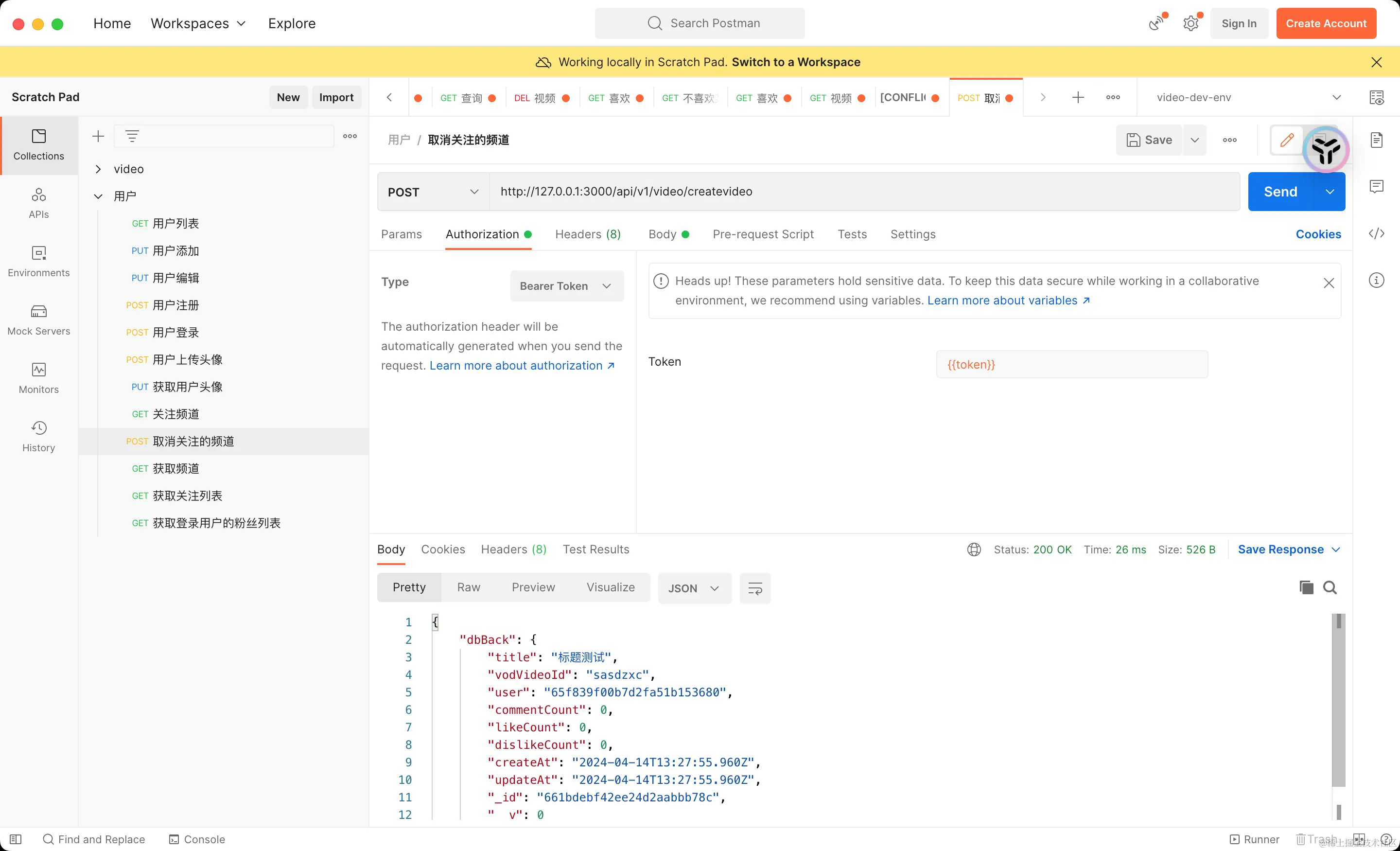 Authorization,值为Bearer {{token}}的条目。