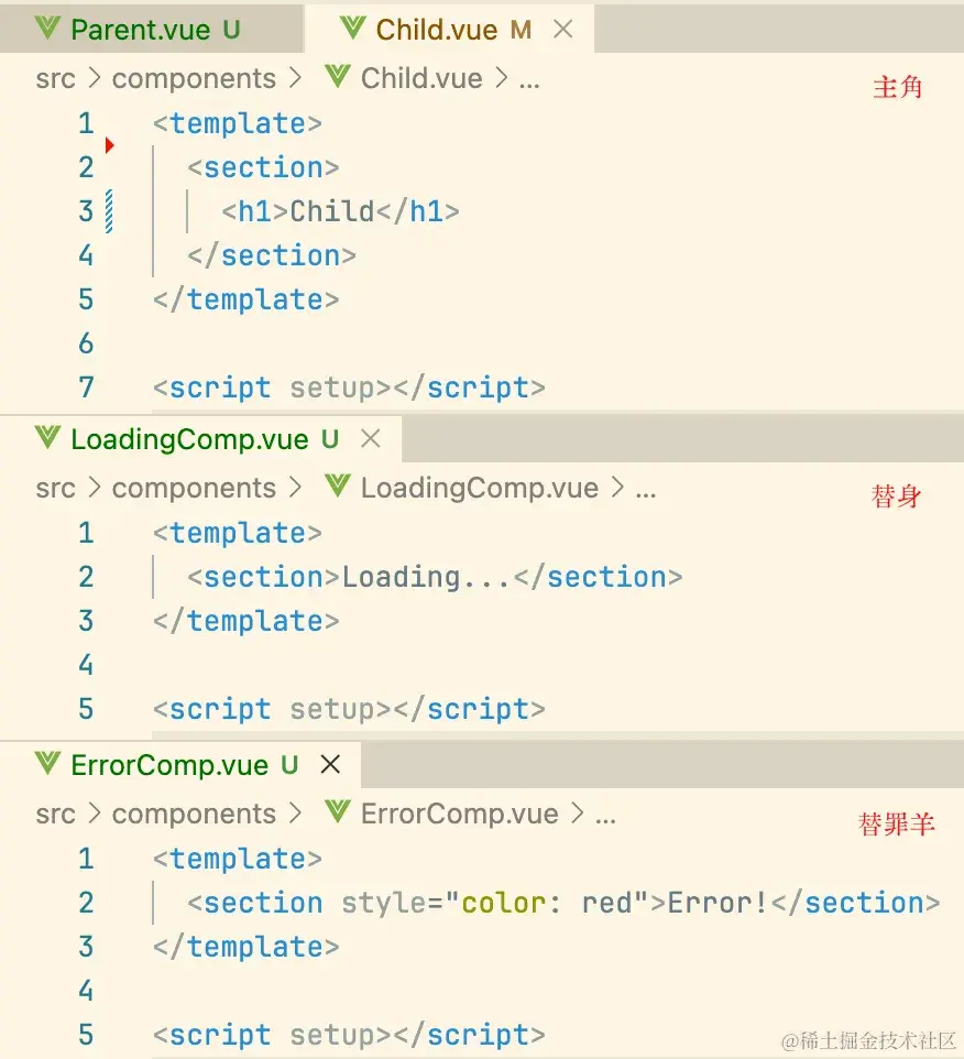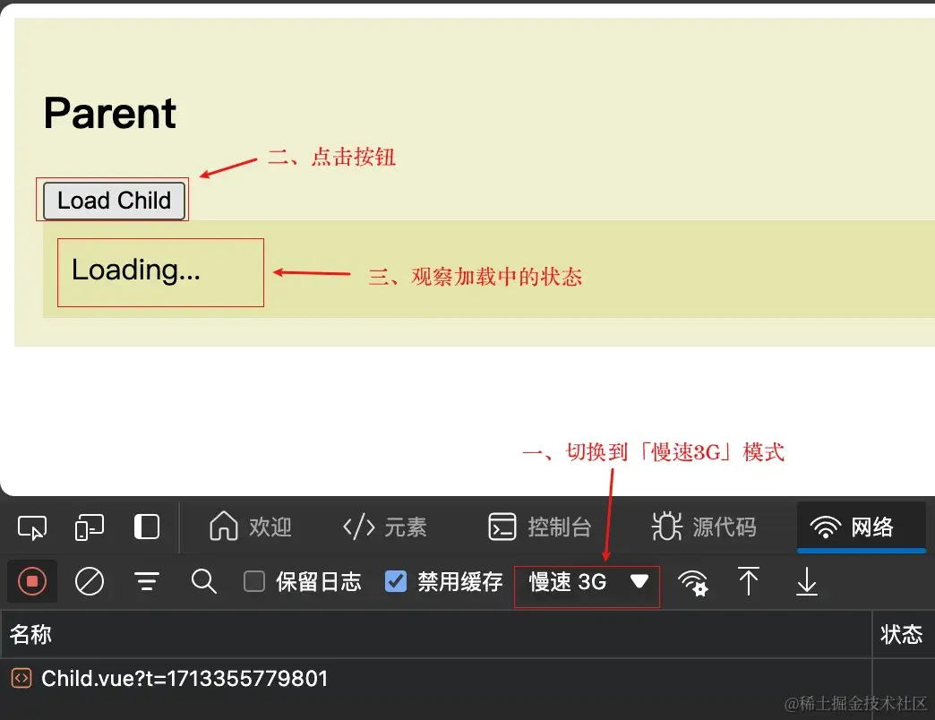 为了解决加载组件中出现的报错、超时、状态展示等问题,可以使用 Vue 3 提供的异步组件(Async Components),它对于加载过程做了更细致的控制。