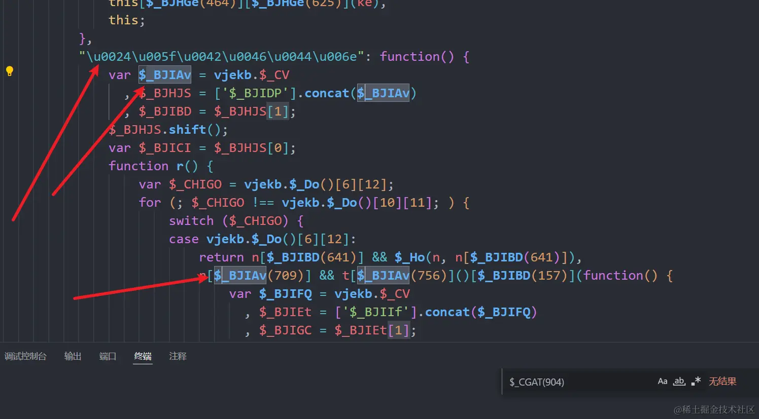 还发现了调用了个解密函数,输入对应的number即可输出解密的字符串