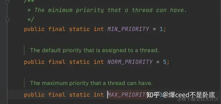 Thread类有一个setPriority()方法,通过一个整型成员变量newPriority来设置线程的优先级,我们可以通过下面的源码看到newPriority值的范围在1-10之间,否则就会抛出异常,如果不设置的话,默认就是5。