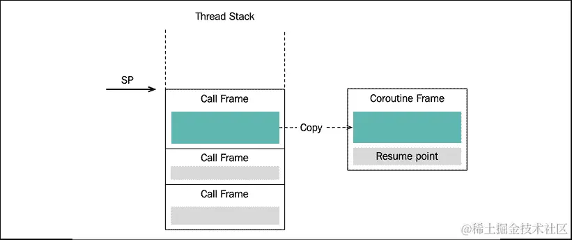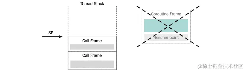 从现在开始,我将在区分调用和恢复,以及挂起和返回时非常严格。它们意味着完全不同的事情。调用协程会创建一个可以被挂起和恢复的协程的新实例。从协程返回会销毁协程实例,它将无法再恢复。