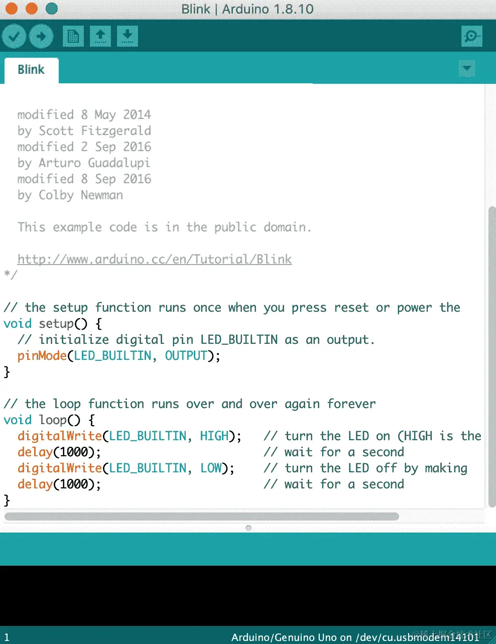 我们将编译并上传到板上一个已经存在的 IDE 自带的示例应用程序: