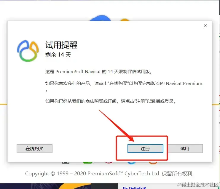 打开Navicat Premium 15,点击注册