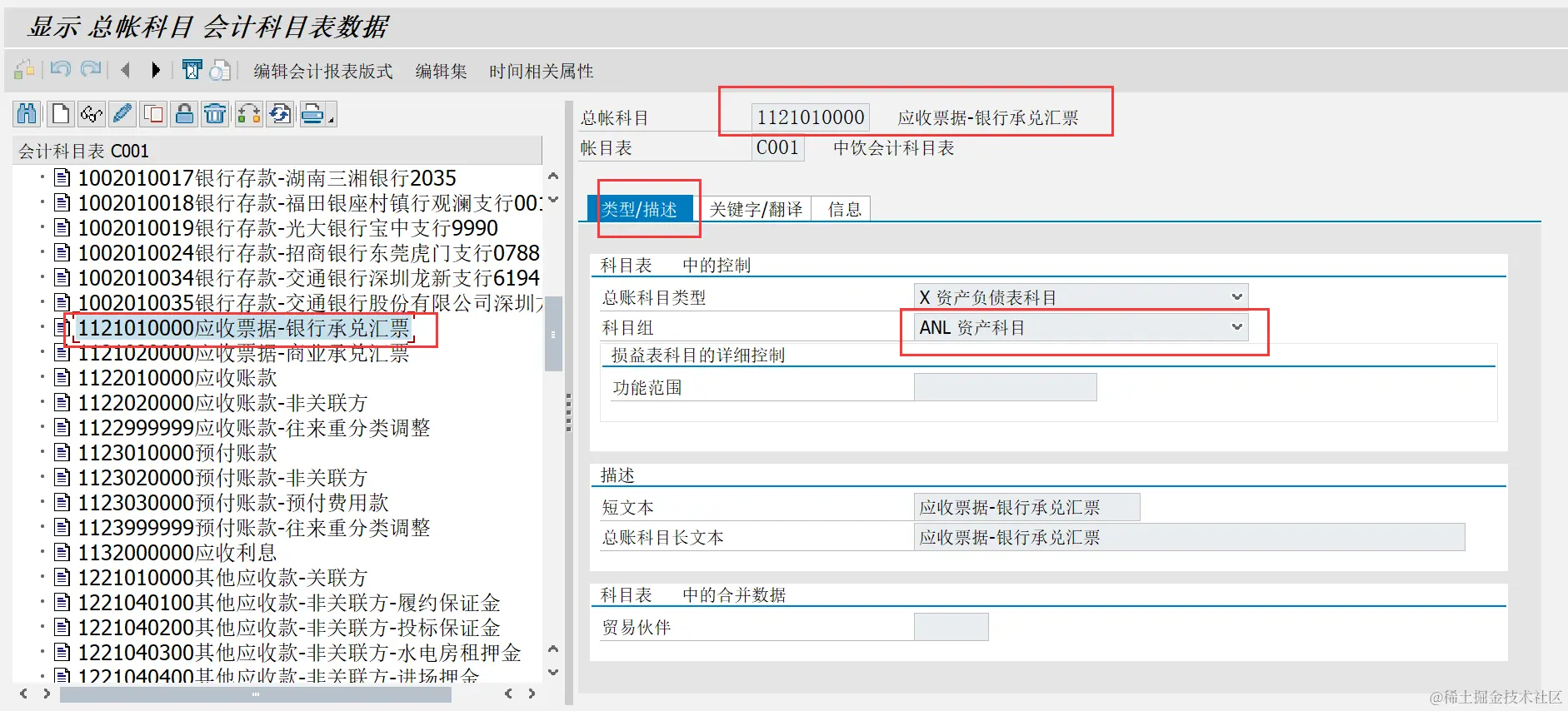 【T-CODE: FSP0】或者【T-CODE: FS00】,找到对应会计科目的类型/描述页签,便可以查看到,如下图所示: