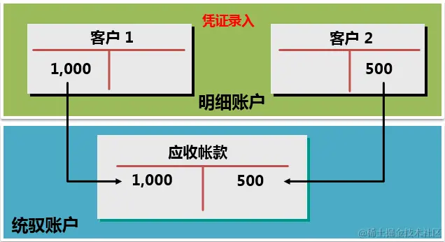 相信大家看完了上面的讲解和图例,应该对统驭科目有了一个基本的了解。在这里,笔者再举一个通俗易懂的例子,相信大家就能明白统驭科目的作用以及它是如何进行核算的了。