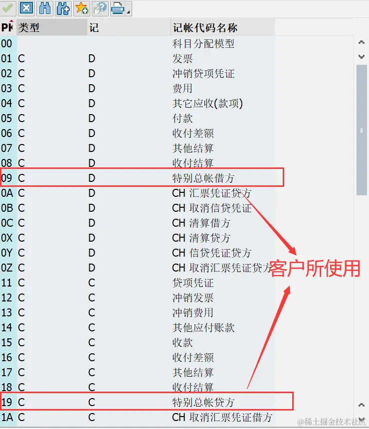 在这里,我们先介绍特别总账。特别总账:就是做账的时候结合特殊的记账码并选择一个特别总账标识,这样账就会自动记到后台配置好的固定科目上。对于客户,支持选择的特别总账的过账码是09和19,对于供应商是29和39。