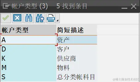 A 资产D 客户K 供应商M 物料S 总分类账科目
