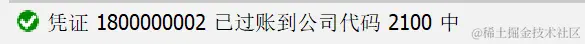 完成后,可以选择保存(立即记账),模拟(模拟记账),预制(生成预制凭证)。笔者这里检查无误后直接选择保存立即生成凭证,弹出一条提示:【凭证 xxx 已过帐到 xxx 公司代码下】如下图所示: