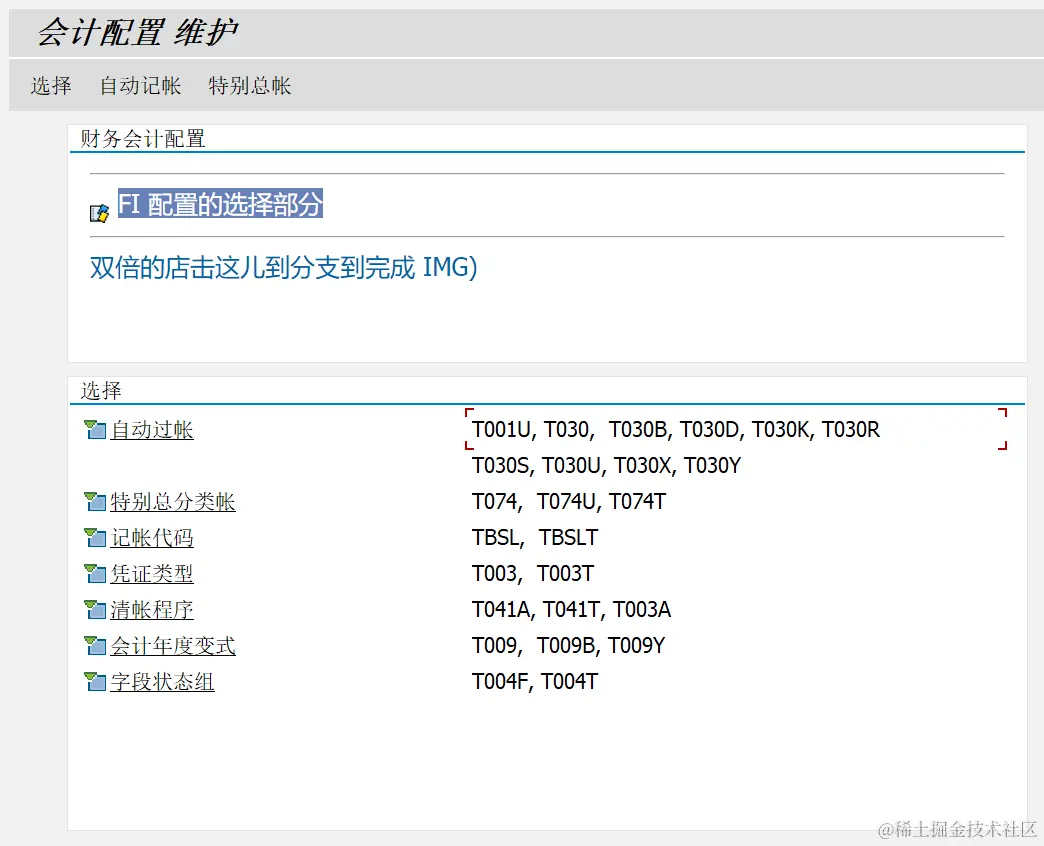 特别总账标识在SAP后台定义中被区分成了三个不同的事务类型,它们分别如下: