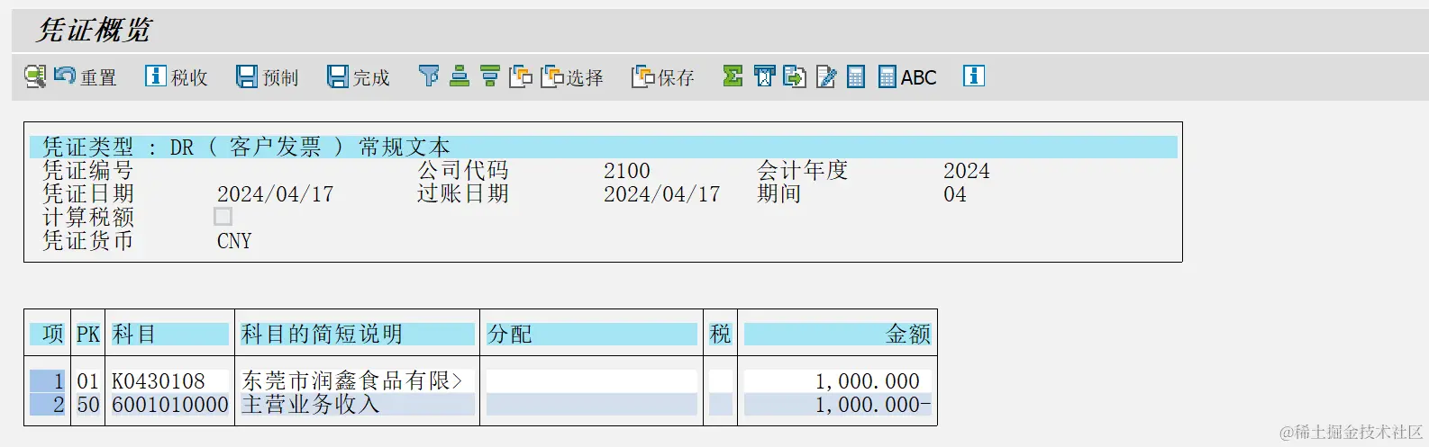讲完了备选统驭科目的后台配置,接下来的内容则是关于它如何进行记账,由于篇幅原因,只演示对于客户发生的业务的记账。