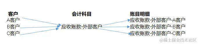 但是在SAP系统中,我们一般会将应收账款设为一个统驭科目,然后将其分配给所有客户,在做账时则会简化为以下两步: