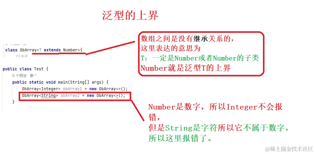 - 注释1:不能new泛型类型的数组 T[] ts = new T[5]; 是不对的