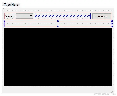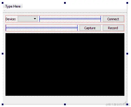 这一步是可选的;我们将其背景设置为黑色,只是为了指示取景器的位置。完成后,让我们在 QFrame 上方再添加一个水平布局,如下所示: