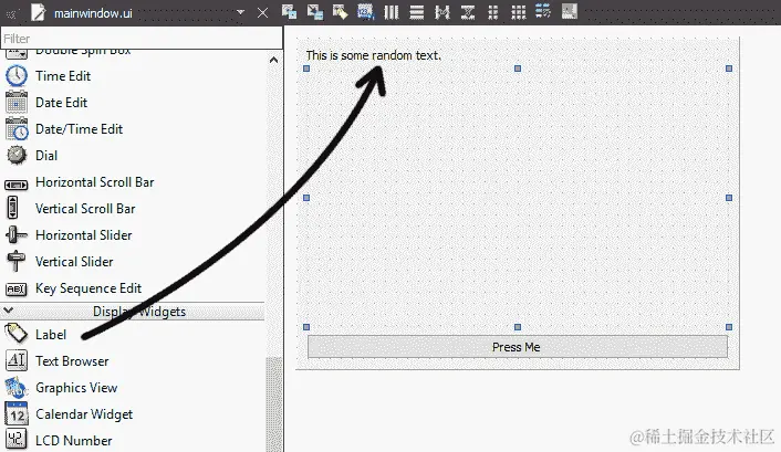 接下来,在三个按钮的右侧放置一个行编辑小部件,然后再添加另一个带有Go标签的按钮: