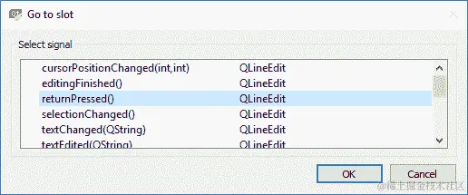 接下来,右键单击文本输入,然后选择转到插槽。然后,选择 returnPressed(),点击 OK 按钮: