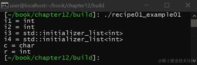 如前面的代码所示,我们使用auto创建了四个变量,对它们进行初始化,然后使用一个名为show_type()的函数返回变量类型的输出。