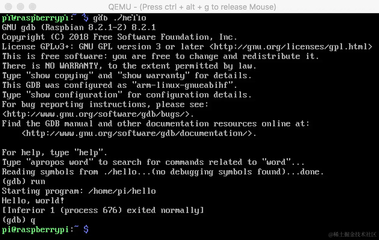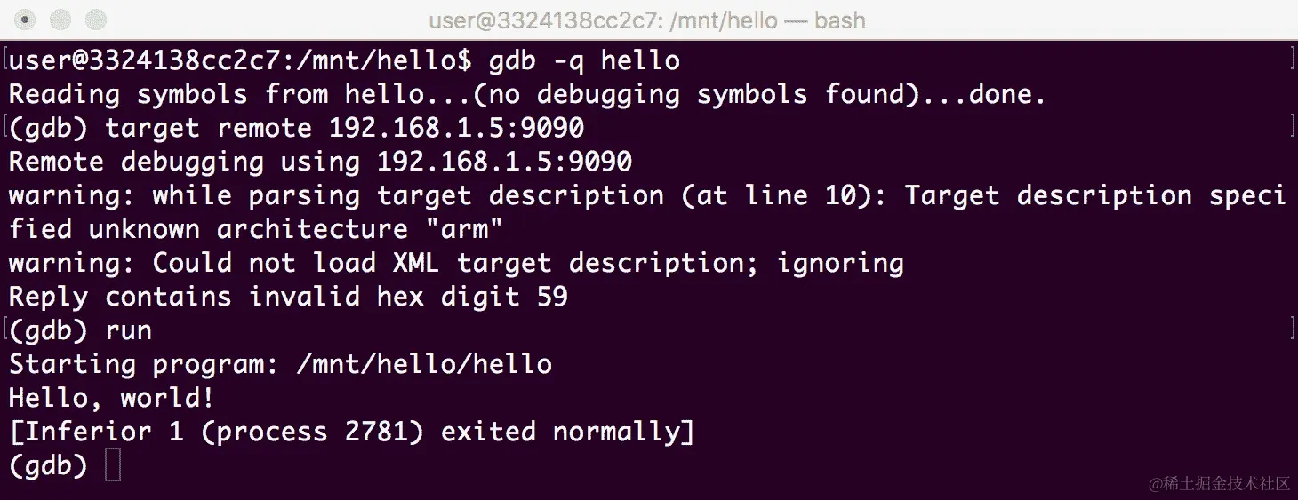 CodeInText:表示文本中的代码词、数据库表名、文件夹名、文件名、文件扩展名、路径名、虚拟 URL、用户输入和 Twitter 用户名。例如:"在gdbserver下运行hello应用程序。"