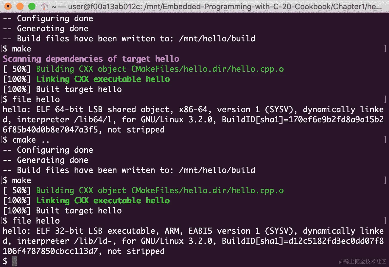 粗体:表示一个新术语、一个重要单词或屏幕上看到的单词。例如,菜单或对话框中的单词会以这种方式出现在文本中。例如:"为了配置 CMake 的交叉编译,最好使用所谓的toolchain文件"