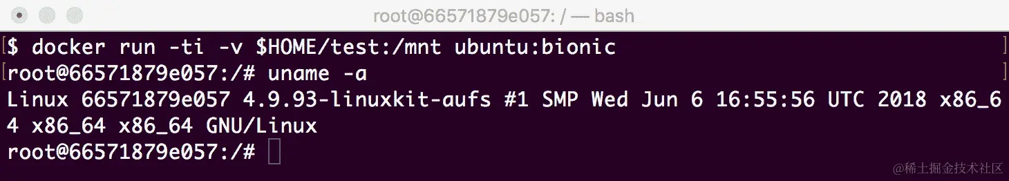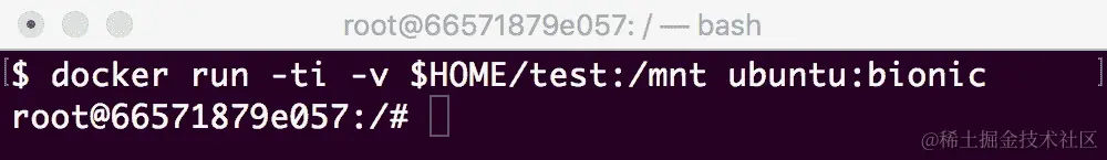 $ docker run -ti -v $HOME/test:/mnt ubuntu:bionic