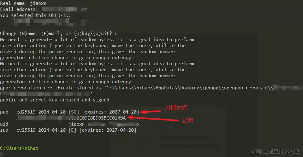 创建密钥对的命令为gpg --gen-key,然后根据提示输入用户名和邮件,然后在弹出的窗口设置一个密码,用来保护密钥对。创建的密钥对默认有效期为3年,后续可以使用其他命令,将有效期设置为永不失效。