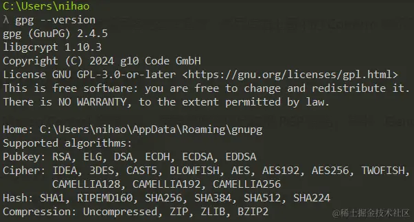 根据你的操作系统 下载 GnuPG 后,使用默认方式安装即可,安装成功后使用gpg --version验证。