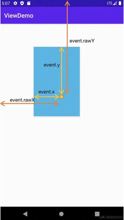 event.rawX // 触摸点相对于屏幕最左侧的距离