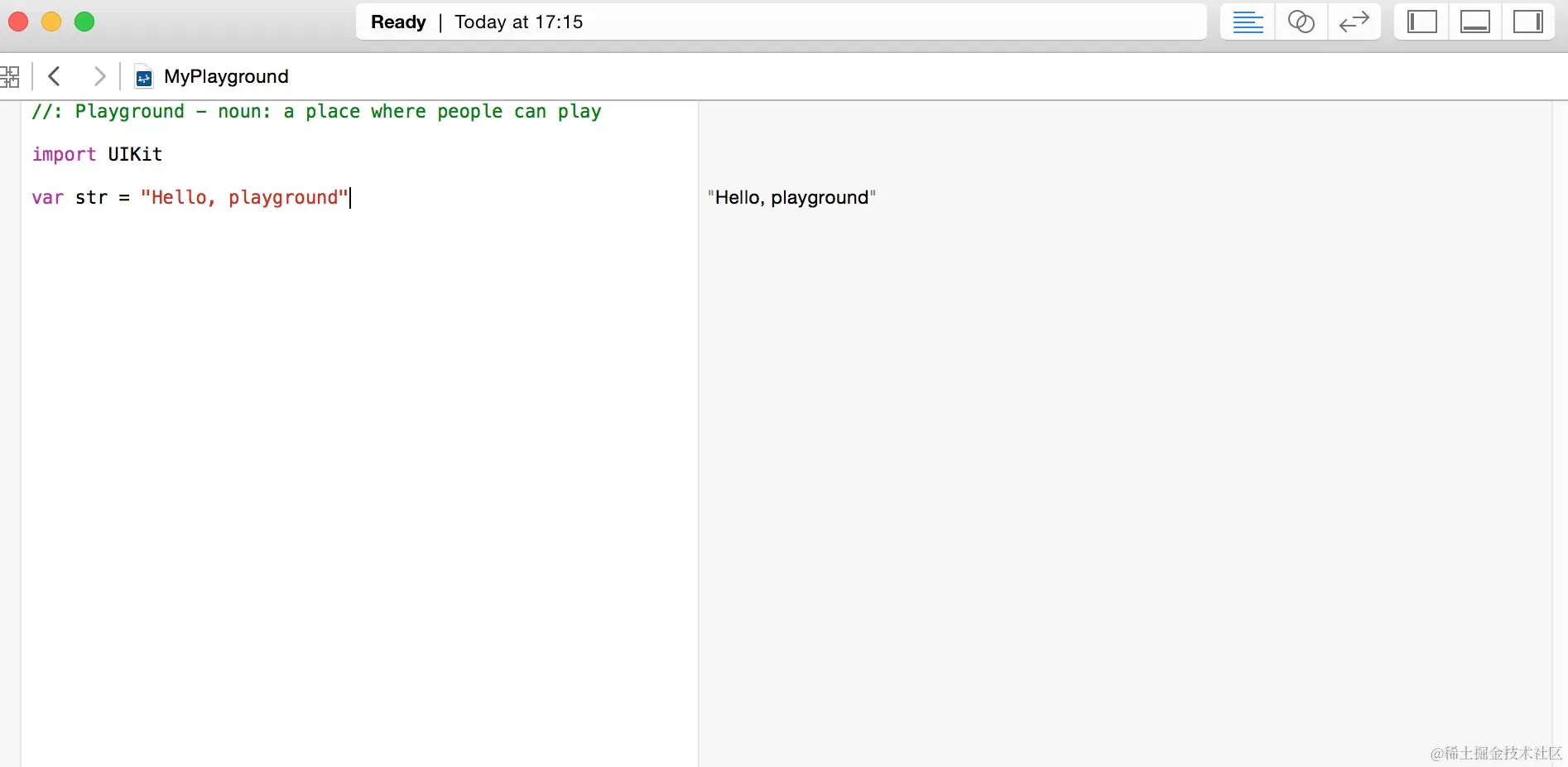 Swift 的 playground 就像是一个可交互的文档,它是用来练手学swift的,写一句代码出一行结果(右侧),可以实时查看代码结果,是学习swift语言的利器!