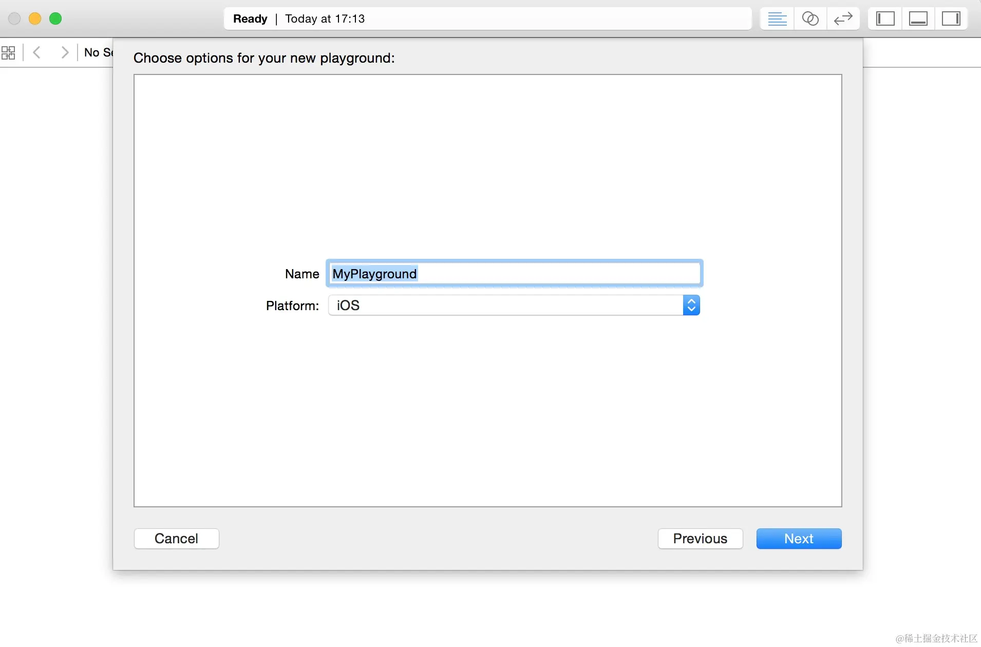 接着 为 playground 设置一个名字并选择 iOS 平台。