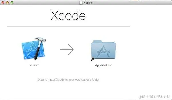 下载完成后,双击下载的 dmg 文件安装,安装完成后我们将 Xcode 图标踢移动到应用文件夹。