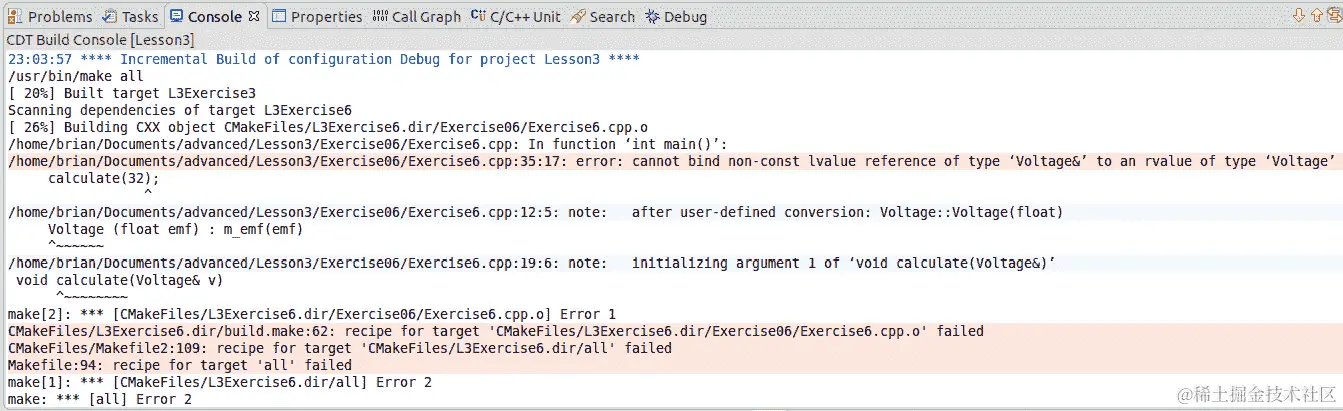 转到项目 | 构建所有菜单以构建所有练习。默认情况下,屏幕底部的控制台将显示CMake 控制台[Lesson2B]。