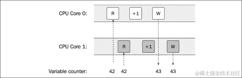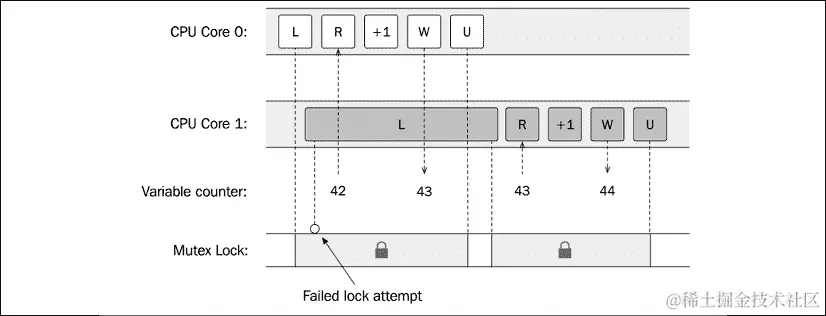 现在,让我们看看原子变量而不是互斥锁。当我们在程序中使用共享原子变量时,它给我们两件事:
