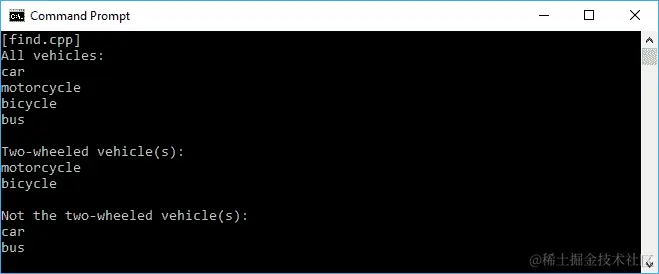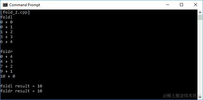 在 C++编程中,我们可以使用accumulate()函数应用fold技术。正如我们在前面的代码中看到的,我们在foldl中使用前向迭代器,而在foldr中使用后向迭代器。控制台上的输出应该如下截图所示: