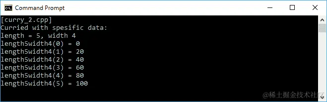 如前面的代码中所示,我们有一个可变模板和名为curry的函数。我们将使用此模板来构建一个柯里化函数。在正常的函数调用中,我们可以如下调用areaOfRectangle()函数: