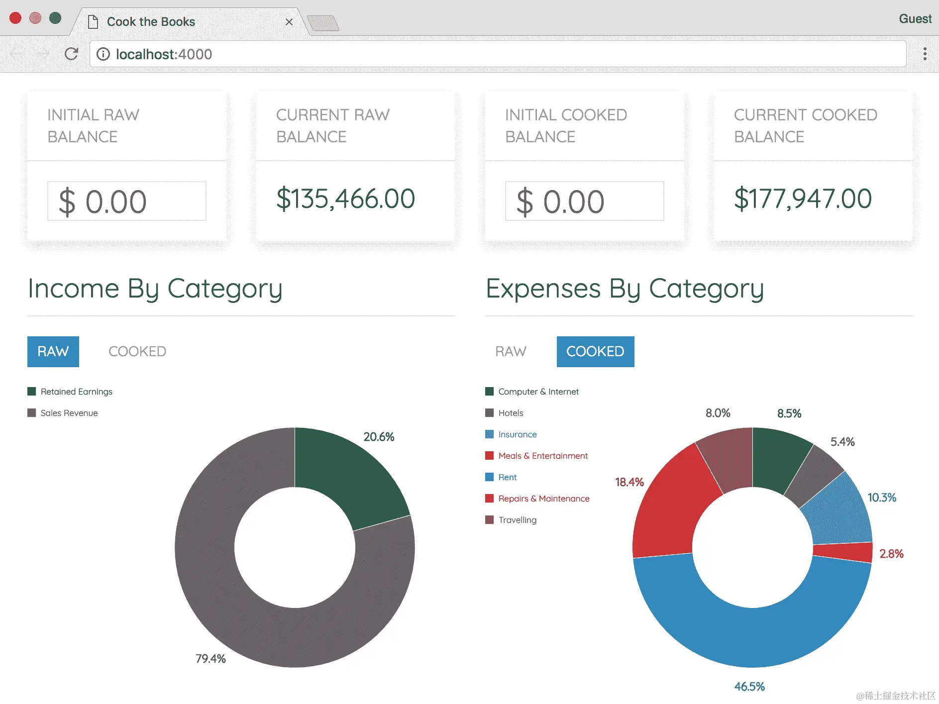 尝试更改“INITIAL RAW BALANCE”和“INITIAL COOKED BALANCE”BalanceCard组件上的输入值。当前的“CURRENT RAW BALANCE”和“CURRENT COOKED BALANCE”卡片数值应该更新以反映您的更改。