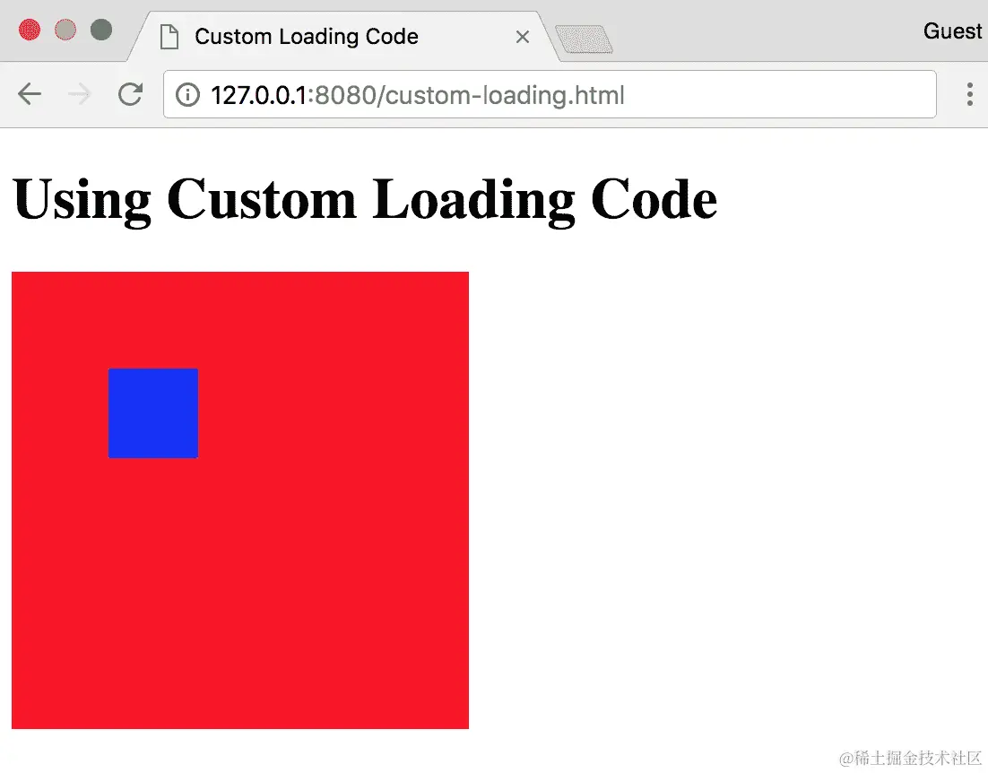 * Looping function that draws a blue square on a red