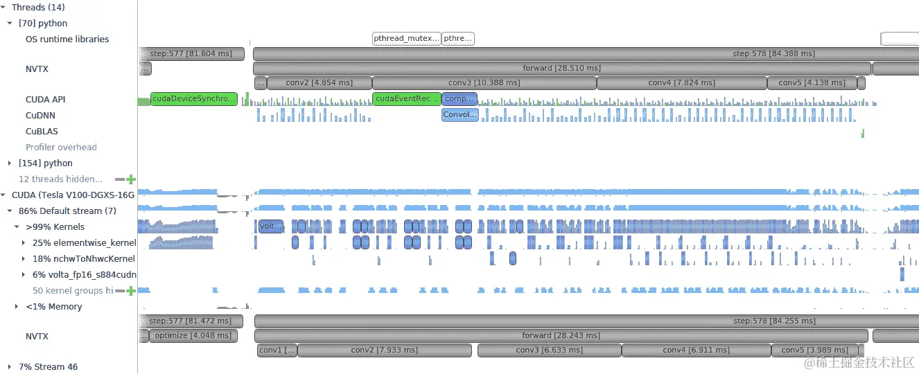 一般来说,我们使用 TensorFlow、PyTorch 和 MxNet 等深度学习框架开发和研究神经网络。由于这些框架,我们可以有效地开发复杂的模型。然而,当涉及性能工程时,由于性能分析工具的能力,理解框架下 GPU 操作是一个陡峭的学习曲线。例如,使用 Chrome 跟踪进行性能分析在模型简单时很有用,但在模型复杂时就不那么有用。