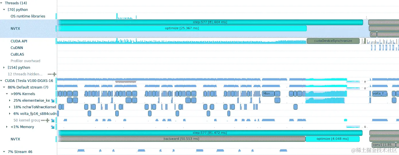 - 最后,让我们使用 NVIDIA Nsight System 审查分析输出: