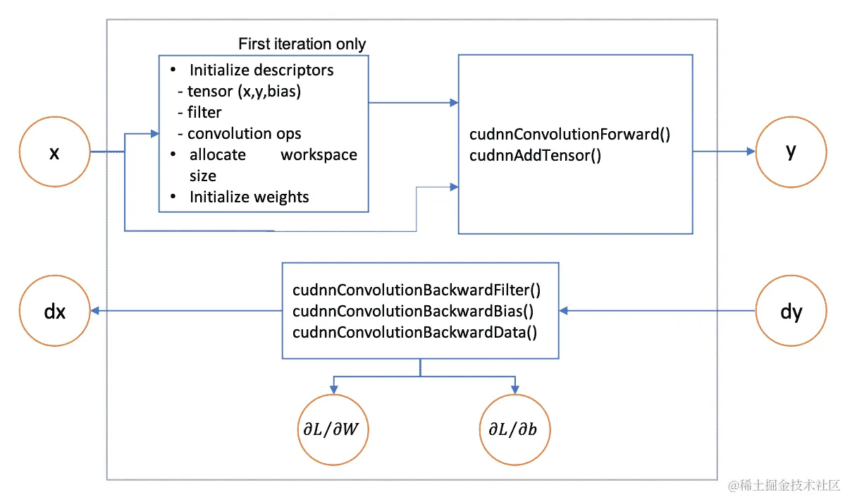 我们可以看到,从主机和 GPU 的测量执行时间中存在巨大差异。主机的测量执行时间为 25.367 毫秒,而 GPU 的时间为 4.048 毫秒。其操作主要是逐元素操作,其执行被延迟直到反向传播完成。我们还可以找到异步执行。之后,我们可以看到cudaDeviceSynchronize()函数,该函数防止当前步骤被下一步骤更新。