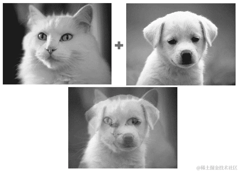为了理解 OpenACC 概念,我们选择了一个简单的计算机视觉算法来合并两个图像。在这段代码中,我们试图合并两个图像,如下所示: