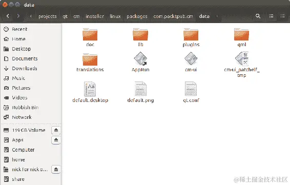 在文件管理器中查看,您会看到它已经在我们的可执行文件旁边添加了各种文件和目录: