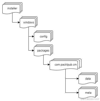 Qt Installer Framework 需要存在两个特定目录:config 和 packages。Config 是描述整个安装程序的单一配置,而您可以将多个包(或组件)捆绑在同一个安装包中。每个组件在 packages 文件夹内有自己的子目录,其中包含一个数据文件夹,其中包含该组件要安装的所有项目,以及一个 meta 文件夹,其中包含包的配置数据。