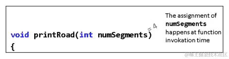 在上述语句中,function call括号中的值4被赋给了printRoad(int numSegments)函数的numSegments变量。这就是4的值如何传递给numSegments的方式: