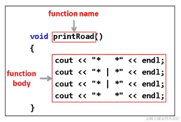 不要忘记在对printRoad()的函数调用后加上括号。函数调用后必须始终跟着圆括号(),否则函数调用将无效,并且会得到编译器错误。