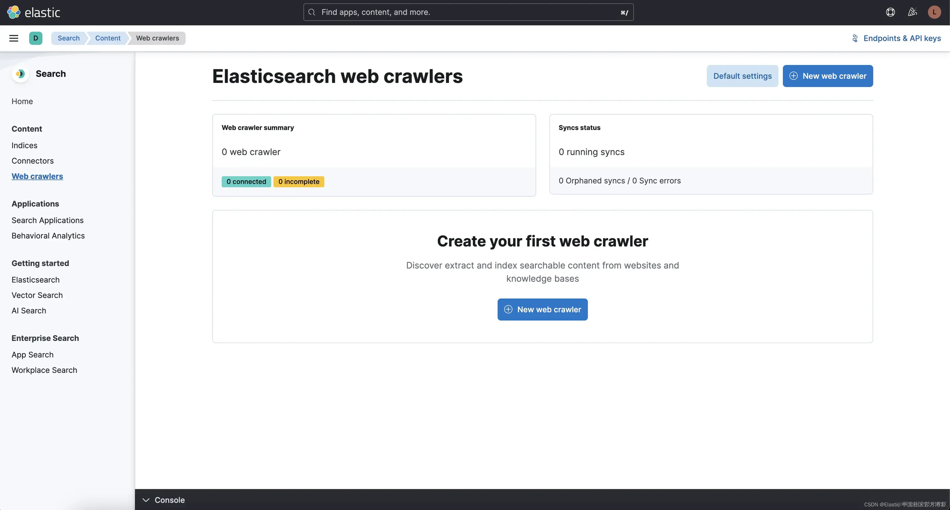 如果你使用的是 Elastic Cloud,设置非常简单,因为 Elastic 网络爬虫是开箱即用的。如果你管理自己的 Elastic 部署,请确保检查此页面以了解需求。