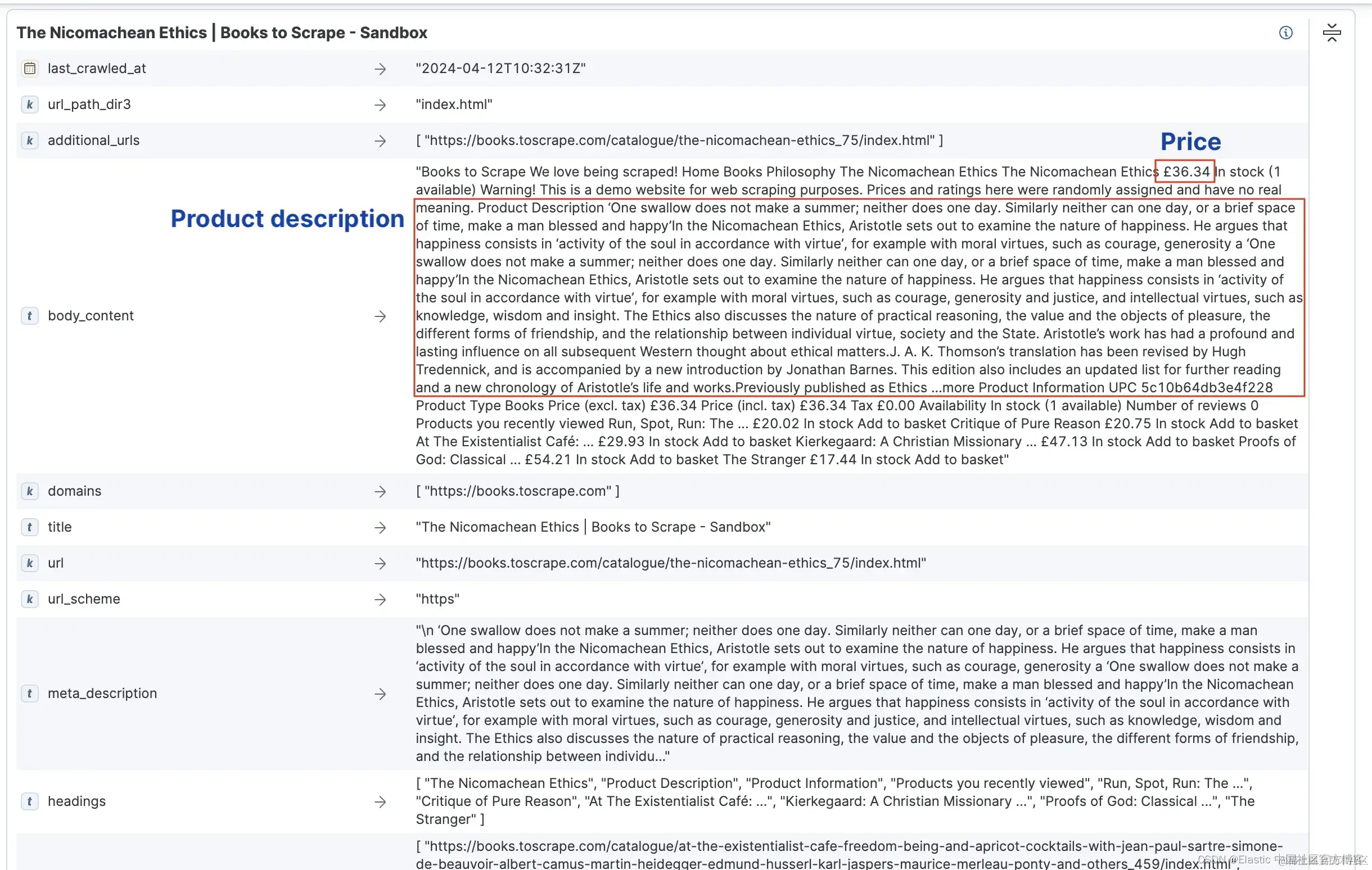 另外一个我们在展开书籍文档时注意到的问题是,书籍的价格或摘要在 body_content 字段中混合在一起。这使得这些重要信息在搜索查询中不易使用。