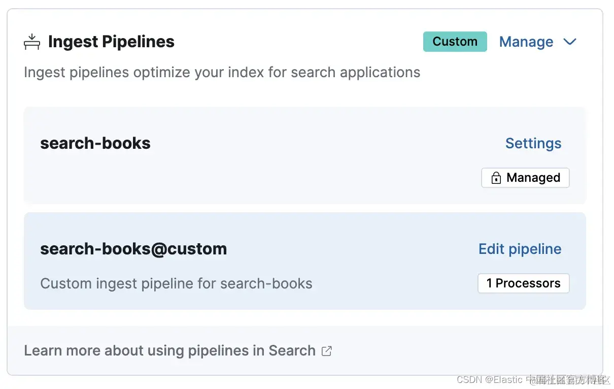 要管理摄取管道,请转到 Pipelines 标签页,点击 “Copy and Customize”,然后点击 “编辑管道” 按钮开始编辑摄取管道。
