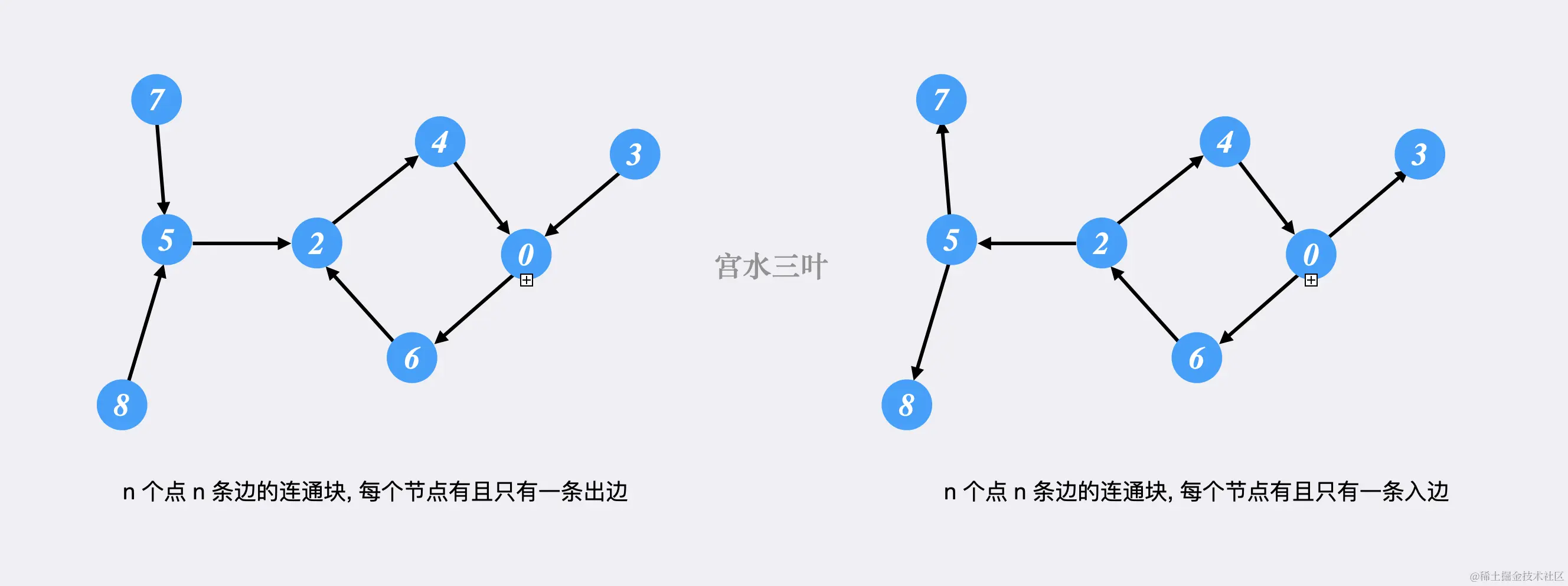 基环树是指其具有 个点 条边的联通块,而「内向」是指树中任意节点有且只有一条出边,对应的「外向」是指树中任意节点有且只有一条入边。